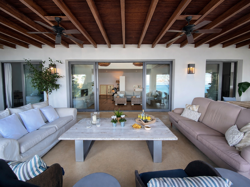 Grand Bleu: Es una propiedad de alto nivel que combina arquitectura cuidada y vistas abiertas al mar. Sus espacios exteriores, con piscina y terrazas, invitan a disfrutar del clima suave de febrero en un entorno elegante. El interior ofrece diseño contemporáneo, luz natural y una distribución pensada para el confort.