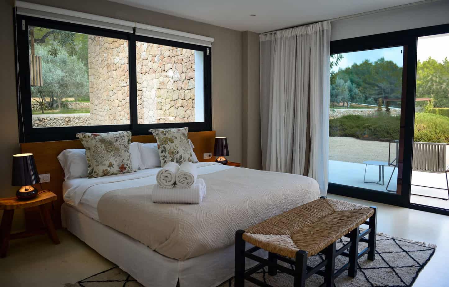 Una de las joyas disponibles en esta temporada es la Villa Can Pep Sa Guaita, ubicada en Santa Eulalia del Río. Esta villa combina tradición ibicenca con comodidades modernas: cinco habitaciones dobles, piscina privada, zona chill out y una decoración que respira estilo y confort. Ideal para quienes buscan un espacio exclusivo en plena naturaleza.