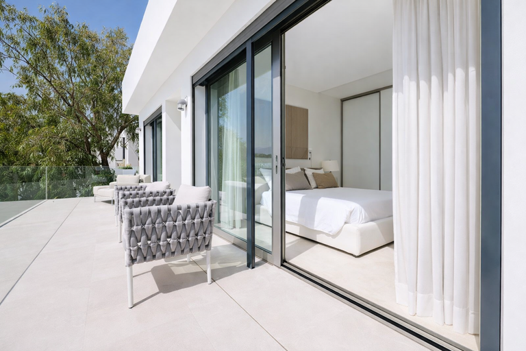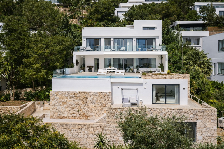 La arquitectura moderna se despliega en varios niveles, lo que maximiza las vistas desde casi todas las estancias. Los grandes ventanales de suelo a techo permiten que la luz natural fluya durante todo el día. Como resultado, interior y exterior se integran de forma armónica, creando una experiencia visual continua hacia el horizonte mediterráneo.