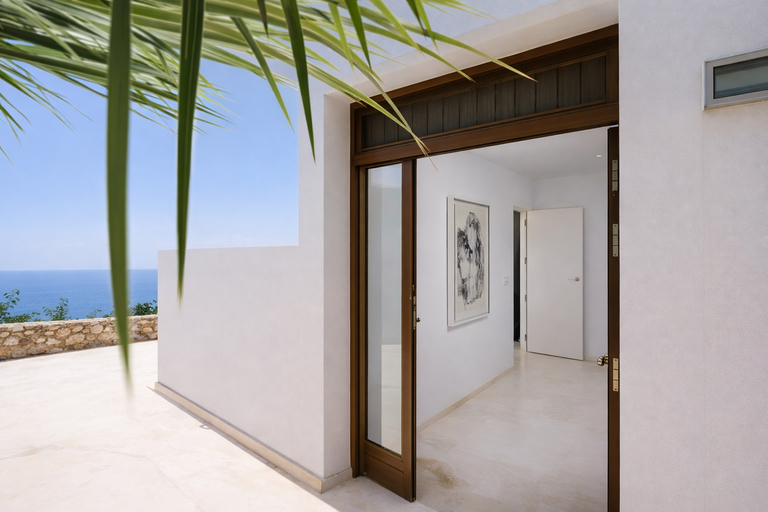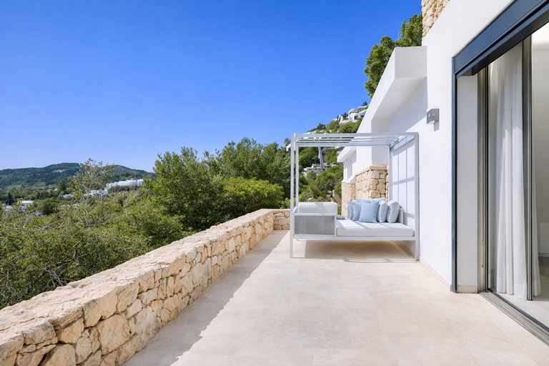 Situada dentro de una urbanización privada con seguridad, esta propiedad ofrece tranquilidad absoluta y vistas abiertas al Mediterráneo, a solo 15 minutos de Ibiza ciudad y del puerto deportivo Marina Botafoch.