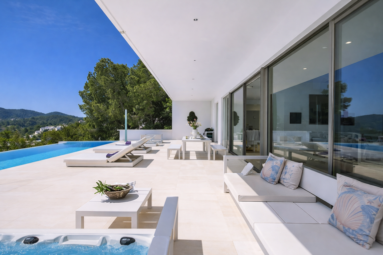 Si buscas un auténtico alquiler de villa de lujo vacacional en Ibiza con vistas al mar, esta villa de lujo en Ibiza con piscina infinita y vistas abiertas es mucho más que una propiedad: es un santuario privado donde el lujo y la serenidad se encuentran en perfecta armonía.
