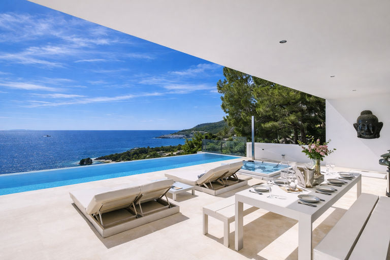 Alquiler de villa de lujo vacacional en Ibiza con vistas al mar