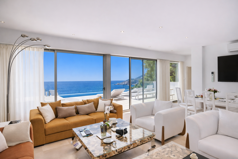 Los interiores amplios combinan mobiliario contemporáneo, textiles seleccionados con criterio y equipamiento de última generación. La cocina totalmente equipada, las zonas de estar luminosas y los dormitorios con vistas abiertas garantizan una estancia marcada por el confort absoluto.