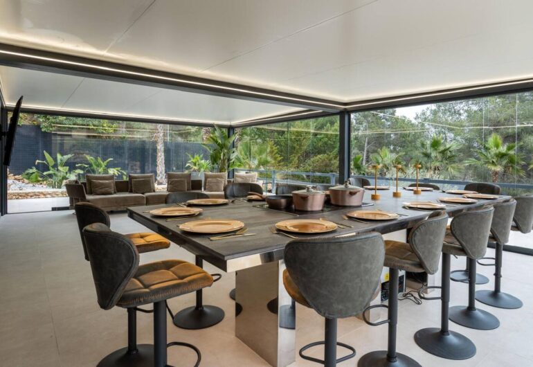 Los jardines están llenos de palmeras, olivos y limoneros y proporcionan un gran parque infantil para los niños … pueden esconderse en la casa del árbol, saltar en el trampolín, jugar al fútbol, al escondite o simplemente chapotear en la piscina. Mientras tanto, los adultos disfrutan de la zona chill out … el salón exterior cubierto de 80 m2, con cómodos asientos, una cocina completa, un bar y áreas de comedor junto a la piscina … ¡Perfecto para relajarse después de un largo día o incluso después de un día corto!