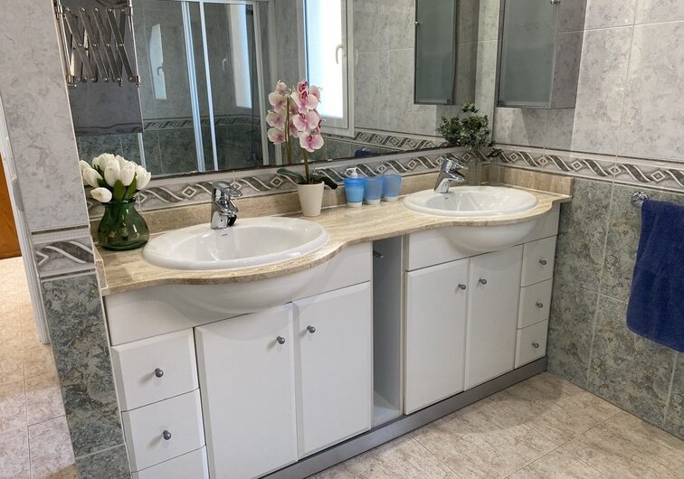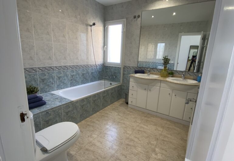 Elegantemente decorada, este chalet con piscina para vacaciones ofrece 6 dormitorios grandes capaces de acomodar a 21 invitados y 3,5 baños completos y grandes (uno es baño en suite), una gran cocina totalmente equipada con una bonita zona de desayuno, gran comedor y salón que conduce a un exuberante jardín privado, zona de barbacoa y piscina (10 x 4 metros). Un amplio garaje para dos coches está disponible bajo petición incluído en tarifa.