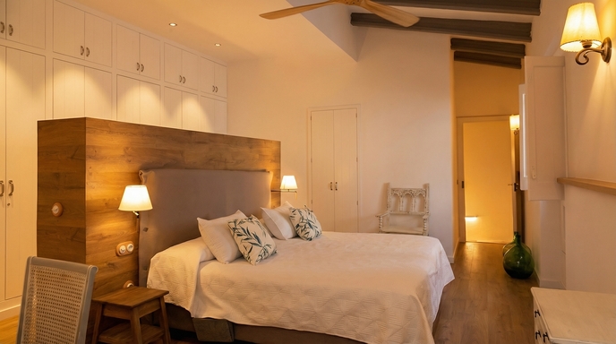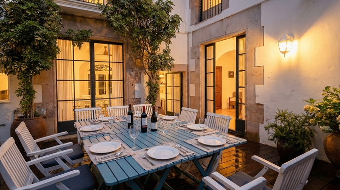 Villa Can Boada dispone de un exclusivo espacio de 100 m² dedicado al fitness y al yoga, complementado con una cocina de verano enmarcada por techos abovedados y muros de piedra original. Es ideal para familias y pequeños grupos que buscan serenidad en un entorno íntimo. La villa tiene capacidad para hasta 10 personas, y para preservar su ambiente relajado, no se permiten fiestas.