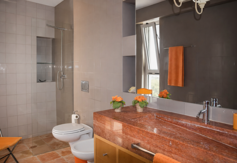 La villa está organizada en 2 casas para un solo grupo y cada habitación cuenta con un baño propio con ducha.
