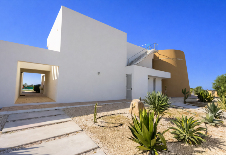 La villa destaca por su arquitectura moderna y elegante, con líneas limpias y un diseño funcional que se integra con el paisaje. Sus amplios espacios interiores y exteriores, junto a grandes ventanales, permiten que la luz natural fluya de forma constante, creando una atmósfera luminosa, acogedora y sofisticada. Todo el conjunto ha sido cuidadosamente pensado para favorecer el confort y el equilibrio, ofreciendo una sensación de bienestar desde el primer momento.
