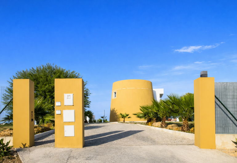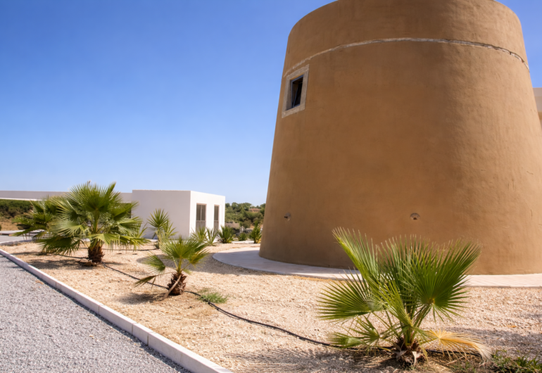 Los amplios jardines privados se convierten en el escenario perfecto para el descanso al aire libre, con zonas de barbacoa y comedores exteriores pensadas para largas sobremesas. Como elemento singular, la terraza circular en lo alto del molino ofrece un espacio único para contemplar el entorno, disfrutar de atardeceres inolvidables y vivir momentos verdaderamente especiales.