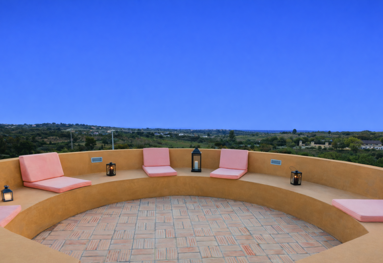 Además, se complementa con un antiguo molino de viento con una terraza circular en lo alto y vistas panorámicas de 360º sobre la Ría Formosa, el mar y la Serra de São Miguel. Este espacio único convierte cada atardecer en una experiencia memorable. Todo ello hace de Villa WindMill una villa de lujo vacacional en Faro con piscina privada pensada para disfrutar del Algarve con tranquilidad, espacio y estilo.