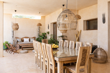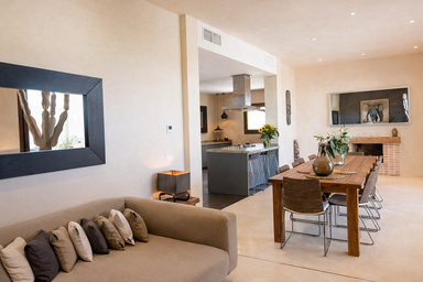 En su interior, los espacios amplios, la decoración cuidada, los acabados de alta calidad y los detalles artesanales crean una atmósfera de sofisticación y confort. Cada área ha sido pensada para el bienestar: desde el salón principal con zonas de descanso y conversación, hasta una cocina totalmente equipada perfecta tanto para comidas informales como para cenas especiales.
