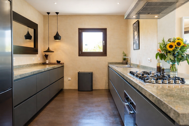 La cocina, completamente equipada con electrodomésticos de alta gama, está pensada tanto para momentos informales como para cenas especiales. Las áreas comunes invitan al relax, con salones amplios y zonas de estar acogedoras ideales para disfrutar en grupo o en pareja.