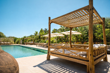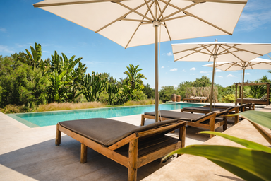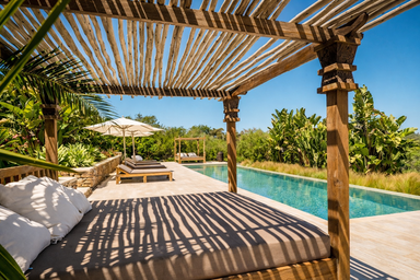 En el exterior, la piscina privada y los cuidados jardines ofrecen espacios donde el tiempo se detiene. Desde siestas a la sombra hasta cenas al aire libre bajo las estrellas, todo en Villa Edén Mediterráneo está diseñado para vivir el lujo sin prisas, en plena conexión con la naturaleza.
