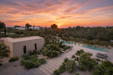 Bienestar, calma y distinción te dan la bienvenida en Edén Mediterráneo, una villa privada para vacaciones en Ibiza que combina lujo contemporáneo y naturaleza en perfecta armonía. Un refugio exclusivo donde cada rincón está diseñado para que desconectes del mundo y reconectes contigo mismo, en un entorno de total tranquilidad.