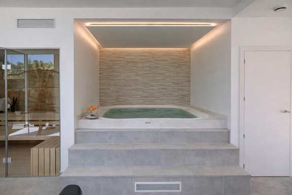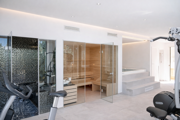 El verdadero diferencial de esta propiedad es su completo spa privado con jacuzzi, dos saunas y gimnasio equipado, convirtiéndola en una de las mejores opciones de alquiler vacacional de lujo en Ibiza para quienes priorizan el bienestar. La vivienda cuenta además con climatización integral, sistema de sonido, seguridad avanzada y aparcamiento interior privado, garantizando una estancia cómoda y sin preocupaciones.