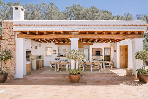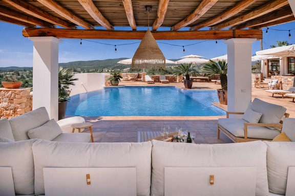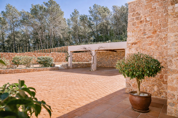 Situada en Santa Gertrudis, reconocida por su ambiente sofisticado y auténtico, la villa permite disfrutar de la tranquilidad del paisaje rural sin renunciar a la cercanía de las mejores playas de Ibiza, restaurantes de alta gastronomía, boutiques exclusivas y puertos deportivos. Es el equilibrio perfecto entre aislamiento y conexión, ideal para quienes buscan un alquiler vacacional de lujo en Ibiza con máxima privacidad.
