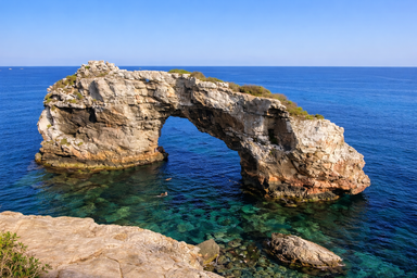 Desde su exclusiva piscina infinita, podrás admirar el icónico arco de piedra que enmarca el horizonte del Mediterráneo. Cada amanecer es una obra de arte y cada atardecer un momento para recordar, mientras el canto de los pájaros y la brisa marina te envuelven en una paz incomparable.