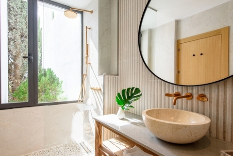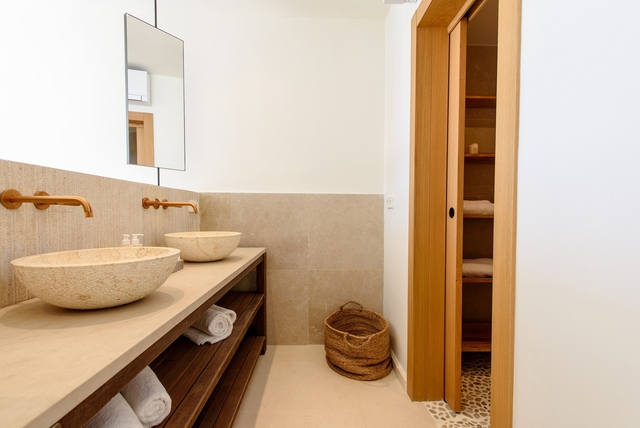 En el interior, la propiedad dispone de 5 dormitorios y 5 baños, ofreciendo privacidad y comodidad en cada espacio. Las suites principales cuentan con camas king size y baños en suite, mientras que el dormitorio independiente con entrada privada y kitchenette resulta ideal para invitados que buscan mayor autonomía durante la estancia. Los espacios comunes han sido diseñados para compartir y disfrutar y además todo el interior está climatizado y pensado para ofrecer una experiencia de lujo discreto, confortable y acogedor.