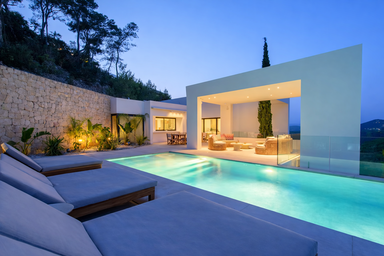 Lujo, calma y bienestar definen esta villa vacacional de lujo con vistas al mar en Ibiza, un refugio exclusivo concebido para quienes buscan privacidad, confort y una experiencia sofisticada en una de las zonas más privilegiadas de la isla. Un espacio donde el diseño contemporáneo y el entorno natural conviven en perfecta armonía.