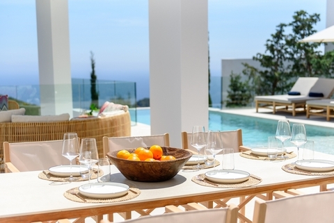 Las terrazas ofrecen zonas lounge, tumbonas, comedor exterior y barbacoa, creando el escenario ideal para desayunos tranquilos, comidas al aire libre y cenas bajo las estrellas. Cada momento invita a disfrutar del ritmo pausado de la isla, en un ambiente de calma, privacidad y bienestar.