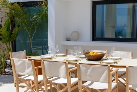La villa se integra de manera armoniosa en el paisaje, combinando diseño contemporáneo, amplitud y luz natural. Sus espacios interiores y exteriores han sido concebidos para disfrutar del estilo de vida mediterráneo con tranquilidad, en un ambiente cuidado y silencioso que invita al descanso desde el primer momento.
