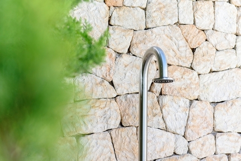 Ducha exterior y WC cerca de la piscina.