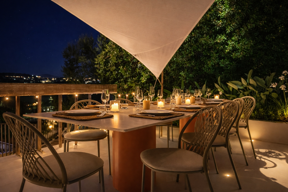 Al caer la tarde, el cielo se tiñe de tonos dorados y las cenas al aire libre se convierten en momentos memorables bajo las estrellas.