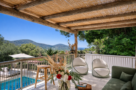 Despertar en Villa Arcus significa disfrutar de la luz mediterránea y de vistas abiertas al paisaje desde la tranquilidad de su terraza.