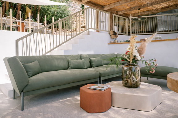 Al atardecer, el salón exterior se convierte en el lugar perfecto para disfrutar del ambiente de Ibiza, mientras la privacidad de Can Furnet y la amplitud de los espacios hacen de esta villa una opción ideal para quienes buscan exclusividad y confort.
