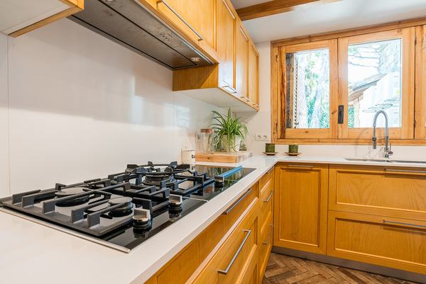 Cocinas totalmente equipadas. Electrodomésticos principales: cafetera, fogones, horno, hervidor eléctrico, lavadora, lavavajillas, microondas, nevera.
