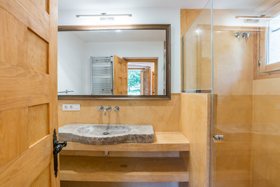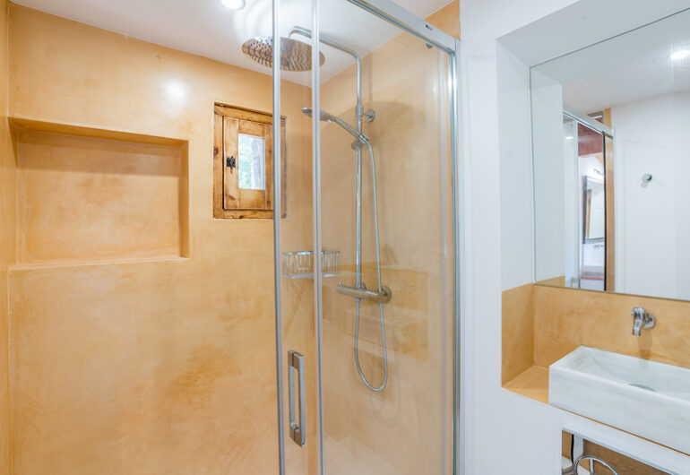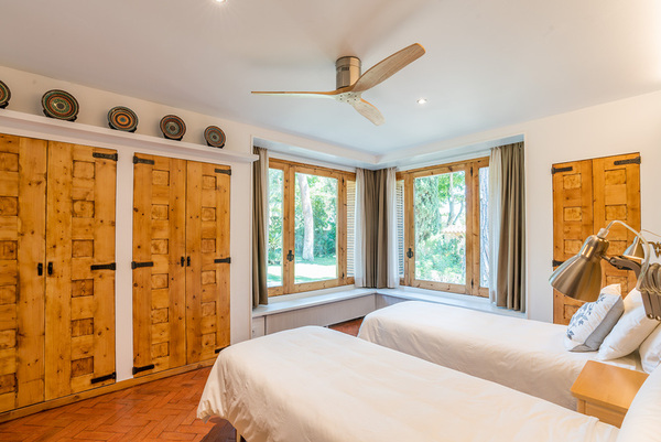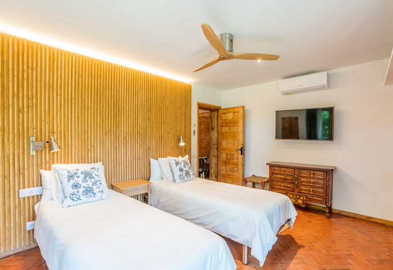 El interior de Villa Can Duarry ha sido diseñado para ofrecer una experiencia de confort serena, donde el carácter de una finca mediterránea se combina con espacios amplios y luminosos pensados para el descanso y la convivencia. La casa de huéspedes dispone de cinco habitaciones —tres suites con baño privado y dos habitaciones dobles con baño compartido—, todas concebidas para garantizar privacidad y comodidad durante la estancia.
