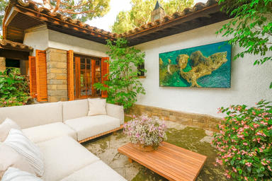 La experiencia se completa con un patio interior y trasero que integra un hall cubierto con sofás rodeado de plantas, un outdoor cinema con pantalla de 89’’ y un patio trasero con carpa de luces y área de relax. Bajo este espacio se encuentra una bodega con BBQ, ideal para encuentros más íntimos. Además, dispone de aire acondicionado y wifi en toda la casa y ha sido renovada con materiales de alta calidad, ofreciendo una estancia cuidada, funcional y en perfecta armonía con su entorno natural.
