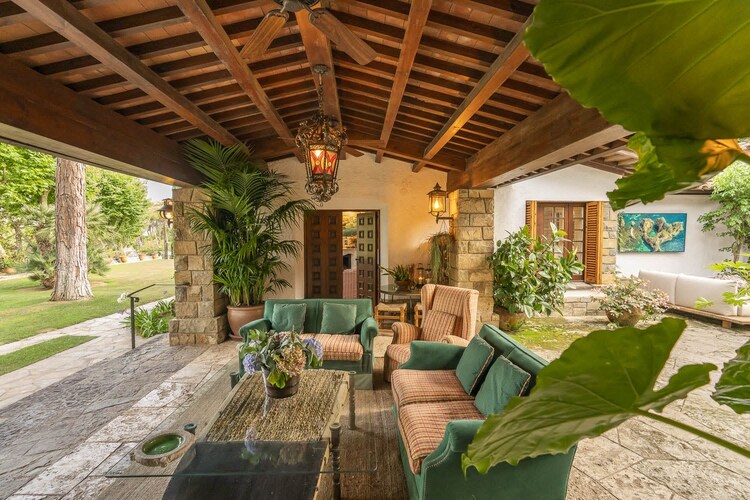 En el exterior, la villa se abre a un espectacular jardín rodeado de vegetación mediterránea, con una piscina privada de 20 metros como protagonista. Diversos espacios al aire libre —porche con cocina exterior y BBQ, patios diferenciados y zonas de descanso— invitan a disfrutar del entorno con calma y sin prisas.